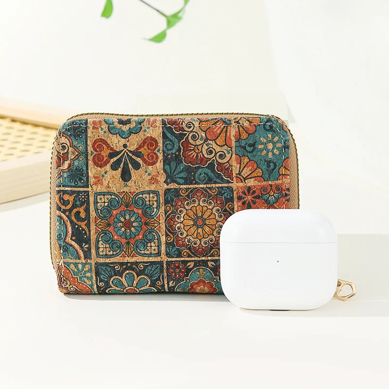8pcs Wallet Cork Leather Rose Geometry Printing Multifucntional Short Card Holder