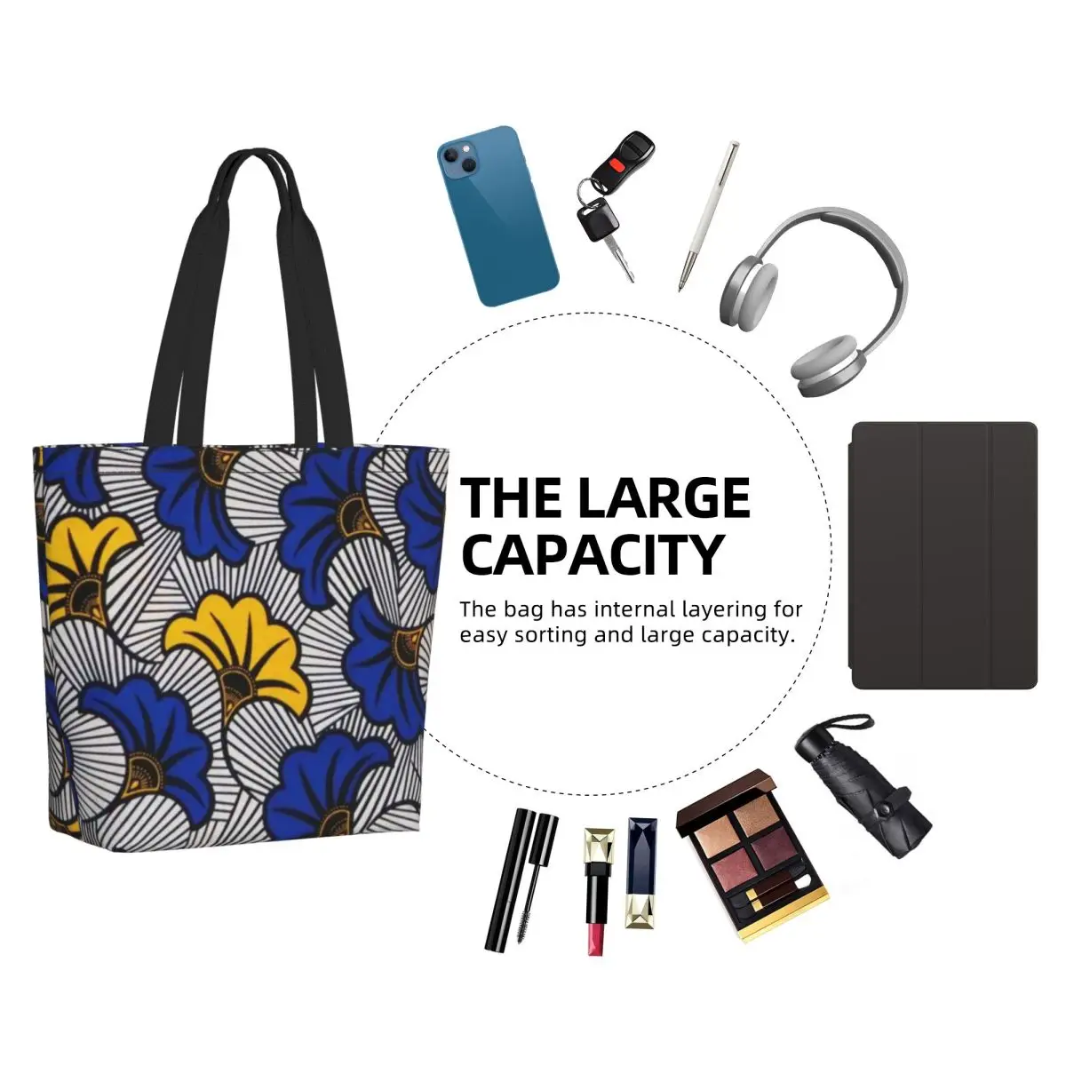 Kawaii Printing Geometric Ankara Pattern Shopping Tote Bags Reusable Canvas Shoulder Shopper African Tribal Art Handbag